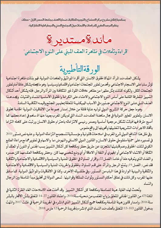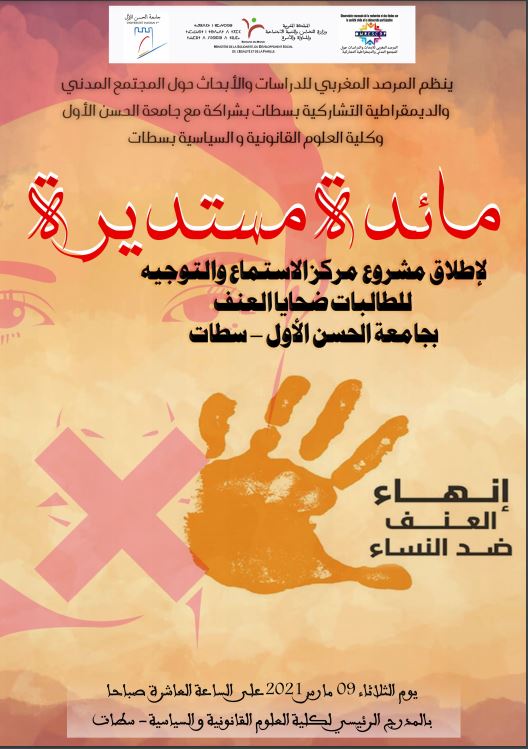 لإطلاق مشروع مركز الاستماع والتوجيه للطالبات ضحايا العنف، بجامعة الحسن الأول – سطات.
