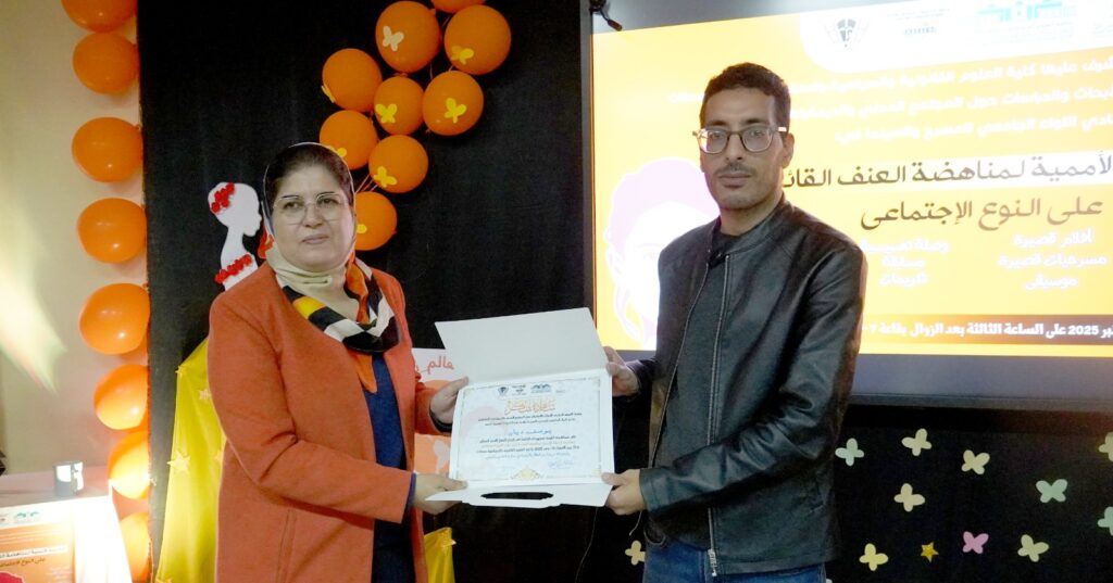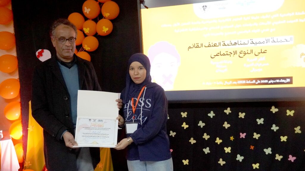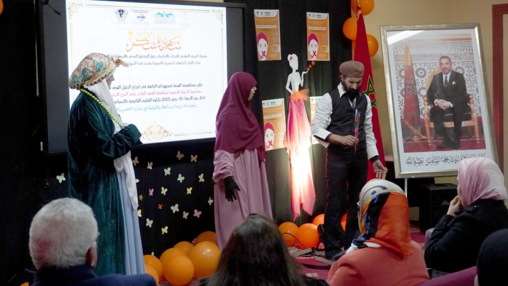 وقد احتضنت القاعة 7 – بلوك A بجامعة الحسن الأول – سطات، هذا الموعد الفني التحسيسي يوم الأربعاء 10 دجنبر 2025. والذي شكل مناسبة لإبراز دور الفن في نشر الوعي، من خلال عروض سينمائية ومسرحيات قصيرة، ووصلات شعرية وموسيقية، رافقها ركن توعوي سلط الضوء على خطورة العنف المبني على النوع الاجتماعي.