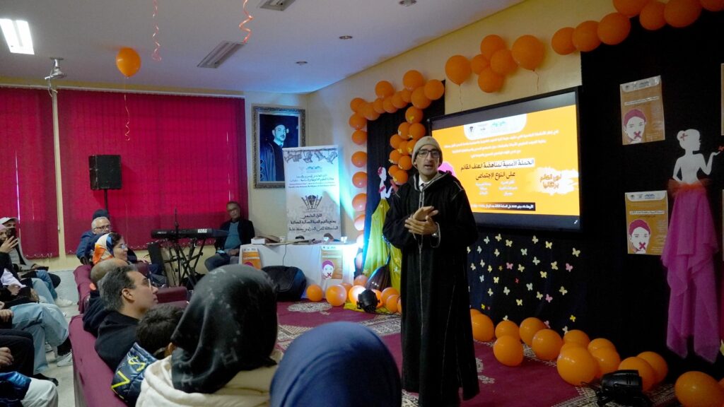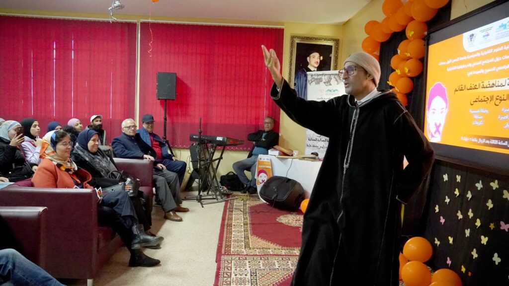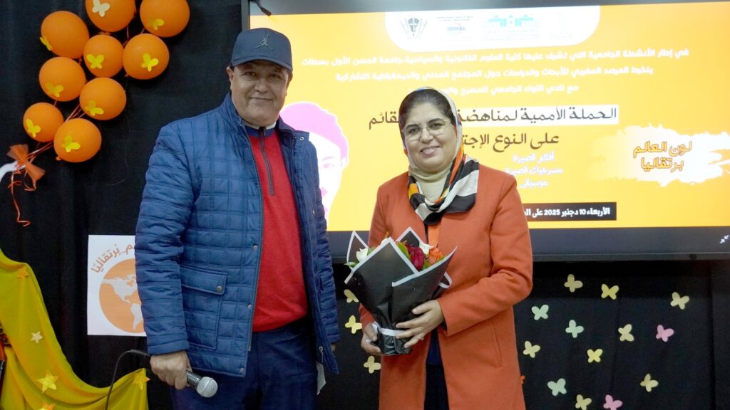 أشرف المرصد المغربي للأبحاث والدراسات حول المجتمع المدني والديمقراطية التشاركية، ونادي اللواء الجامعي للمسرح والسينما مع ، وبشراكة مع كلية العلوم القانونية والسياسية بسطات، على تنظيم فعاليات الحملة الأممية لمناهضة العنف القائم على النوع الاجتماعي تحت شعار: “لون العالم برتقالياً”.
